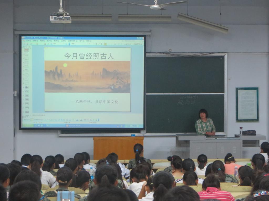 中华传统文化源远流长、博大精深,积淀着中华民族最深沉的精神财富和追求,是社会主义核心价值观的深厚根基,是实现中华民族伟大复兴中国梦的有力支撑。为了使传统文化深植于新生心中,也让15级新生受到传统文化的感染,2015年9月24日下午七点,城乡规划与园林学院在B合4召开关于传统文化的讲座。参与本次讲座的有团总支书记赵学琴、15级辅导员袁菁唯以及全体15级新生。本次讲座荣幸邀请到了文学与传媒学院的张福存老师为大家主讲,张老师主讲的题目是:明月曾经照古人。