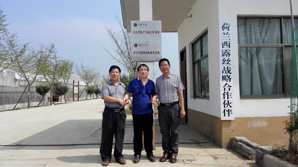 河南德锦花卉有限公司位于鄢陵县彭店乡花博大道田岗村南段,占地面积200余亩,目前已拥有5万多平方米的培育温室,主要提供鲜切花的种植、剪切、销售、花卉种苗、园林苗木的培育、科研、推广、从事货物和技术进出口业务。公司总经理丁龙表示此次与我校联合共建鲜切花研发基地,依托城乡规划与园林学院风景园林专业的学科优势,结合公司发展,在花卉种植、土壤培育等方面开展深度合作,实现产、学、研一体化,为地方经济发展做出更大贡献。