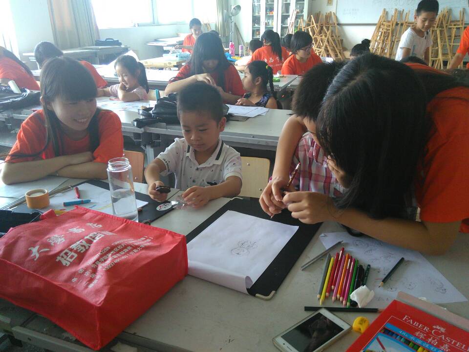 为了培养孩子们对绘画的兴趣,开发其想象力和动手能力,2015年7月1日,许昌学院城乡规划与园林学院儿童绘画培训创业实践队由队长刘珊带队,在综合楼四楼绘画室开始了第一天的实践活动。