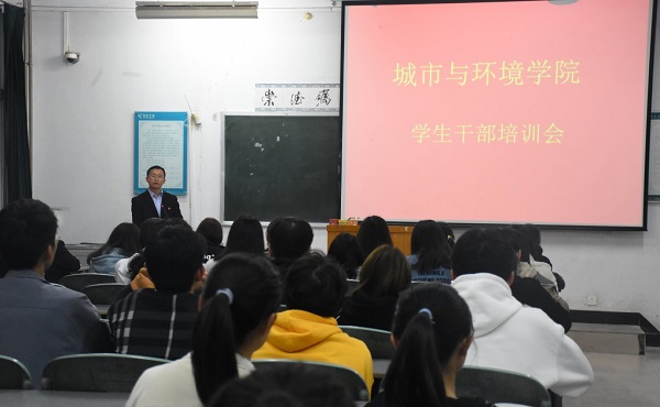 为了进一步提高20级学生干部的组织作用、榜样作用、桥梁作用,共同携手班级进步,11月13日17时我院召开了20级学生干部培训会,城市与环境学院党委副书记陈书崇,主席团成员及20级全体班干部参加此次会议。会议初始,党委副书记陈书崇对20级班干部就如何处理好学习和工作的矛盾,如何当好班干部及做好班干部的要求这三个方面进行主要讲解。陈书记以自己为例,向二零级学生干部传授了自己当班干部时的经验与感受,陈书记指出大学班干部是一个不断发现自我、突破自我、学习沟通交流的良好平台,每个人应该勇于担当,敢于负责积极进取,和谐友善的对待班级同学,齐心协力共同打造班级文化。陈副书记的热切讲述不仅提升了学生干部的思想境界,更体现了其对20届学生干部的相信与期待,相信20级学生干部必定会受益匪浅并为接下来的目标不断努力。此次会议,进一步强化了20级学生干部的使命感和担当,规范了学生干部的思想意识。大学道路且长,来日可期,诚愿我院学子在20级班干的带领下取得优异的成绩。