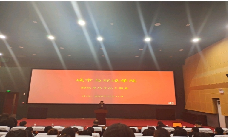 为进一步加强大一新生们的考风考纪,构建诚信校园,保证期末考试的顺利进行,倡导同学们“端正考风、严肃考纪、文明答题、诚信应考”。12月11日下午我院在创新创业楼召开20级期末考试动员大会,向大一新生们传递期末考试考风考纪的具体要求。参加此次会议有院党委书记高均昭、副书记陈书崇、副院长李长坡和20级辅导员韩慧鸽老师,20级全体同学。
