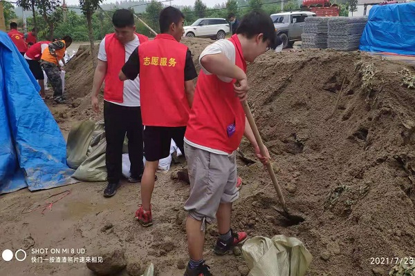 灾难面前,我院青年志愿者战斗在前,守望相助,奋勇当先。他们巡堤检查,清理填沙,护送物资……他们发扬着奉献、友爱、互助、进步的精神,为抗洪救灾贡献青春力量。此次援助活动展示了在危难关头青年大学生担起新时代脊梁,虽力薄势微,但义无反顾。