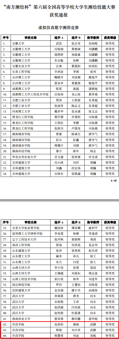 我校在全国高等学校大学生测绘技能大赛中获得优异成绩