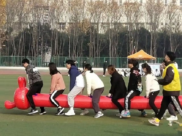 此次运动会项目多样,各具特色。其中“急速毛毛虫”、“旋风跑”、“滚雪球”以小组为单位,小组之间通过默契的配合,完成规定的比赛内容,通过用时多少来决定一个组的成绩;“同心鼓”、“纸杯传递”是多人参与的团体活动,参与人员团结一心,在规定时间内完成的指标越高,则为优胜团体;“袋鼠跳”、“竞速攀岩”是个人与团体的比赛,个人的发挥影响着整个团队的成绩,有助于彰显参赛人员为团体奉献的精神。赛场上,我院学生表现出色,展现出团结友爱、相互包容的团队精神,也充分展示了城市与环境学院的青春风采。
