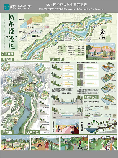 作品名称:《韧尔慢“漫”还——韧性城市视角下的郑州市金水河道防洪景观设计》
