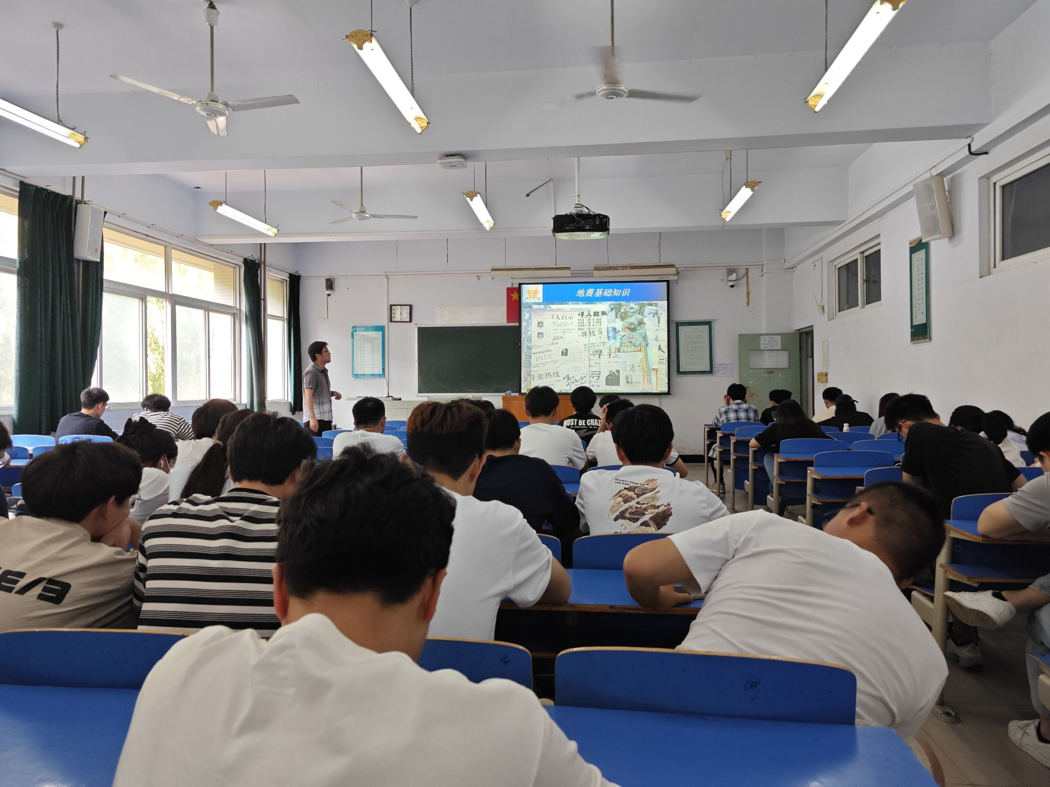 讲座分为2个主题,由地理与空间信息学院的林晓光博士主讲地震科普知识,邀请土木工程学院张磊博士主讲火灾科普知识。