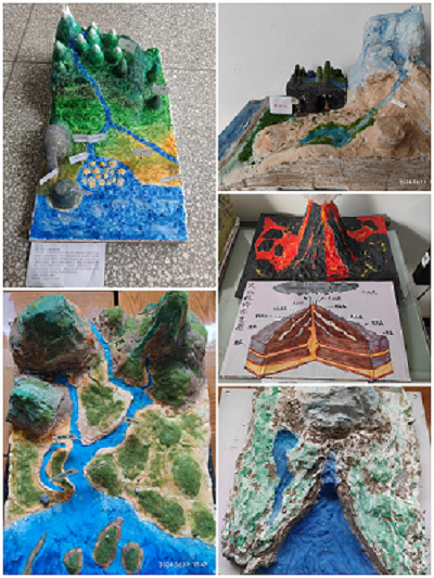在比赛现场,参赛选手们纷纷呈现出自己的精心准备的作品,通过精炼的板书、生动的板图以及独具特色的地理模型,展示了各自的教学能力和专业素养。选手们的作品不仅设计新颖、内容充实,而且富有教育意义和启发性,充分展现了地理学科的独特魅力。