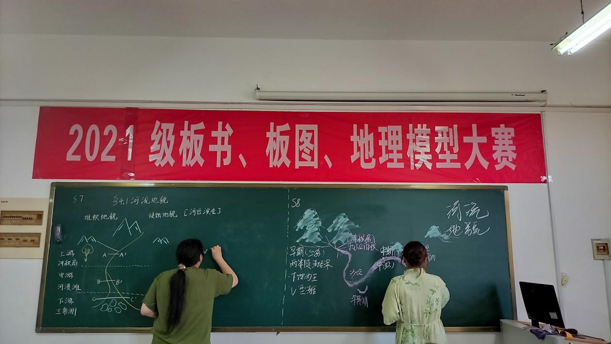 6月14日,2021级地理科学专业板书、板图、地理模型大赛成功举办。本次大赛参赛的选手合计57名,由5位教学技能训练指导教师担任评委,2022级同学进行了全程观摩。