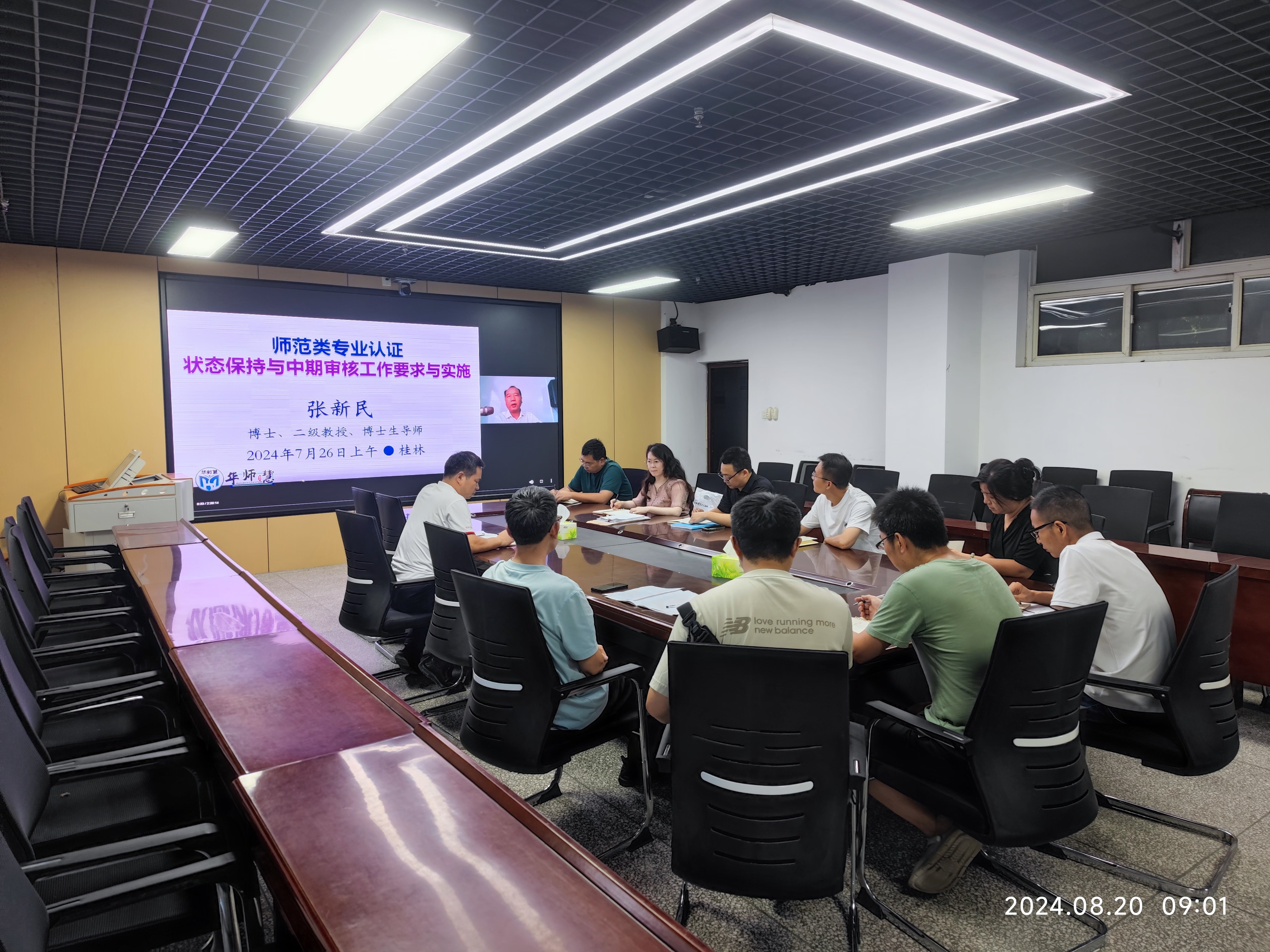 8月20日,在233会议室,地理科学专业全体教师集体学习了由河南省教育评估中心副主任张新民教授所作的“师范类专业认证状态保持与中期审核工作要求与实施”专题报告。此次报告会由学院副院长李长坡主持,地理科学系主任韩冰雪、副主任田光辉及全体教师参与了此次培训学习。