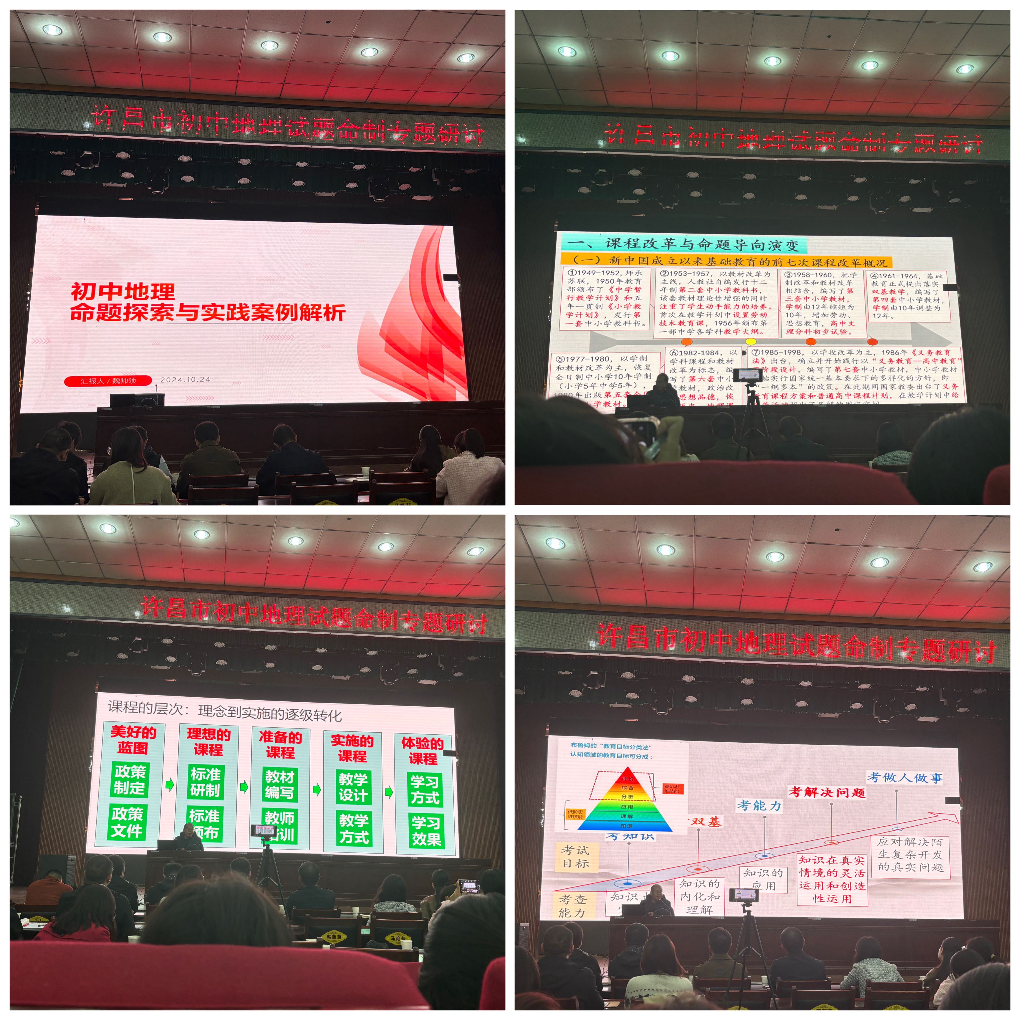 见习期间,全体2022级地理科学师范生还参与了许昌市初中地理试题命制专题教学研讨活动。活动中,祝泽宇和魏帅领两位教学名师分享了他们的命题思考和经验,让师范生们第一次亲身感受到了作为地理教师应如何改编和命制试题。这次教研活动对于即将走上教师岗位的师范生们来说,是一次十分难得的学习机会。