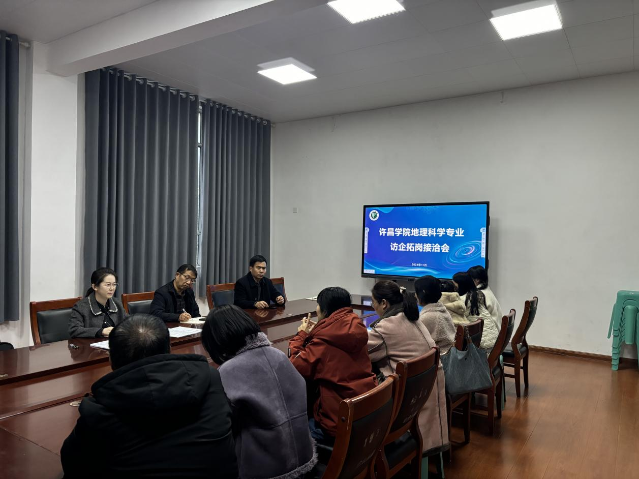 为深入了解招聘单位的发展建设和人才需求,拓宽毕业生就业渠道,2024年11月27日下午,许昌学院地理与空间信息学院地理科学系主任韩冰雪、教师李洪彬,许昌学院教务处实践教学科科长田水泉、科员刘海虹一行,来到许昌市襄城县库庄初级中学开展访企拓岗座谈活动。襄城县库庄初级中学校长苏东垒、地理教研组全体教师参与座谈。