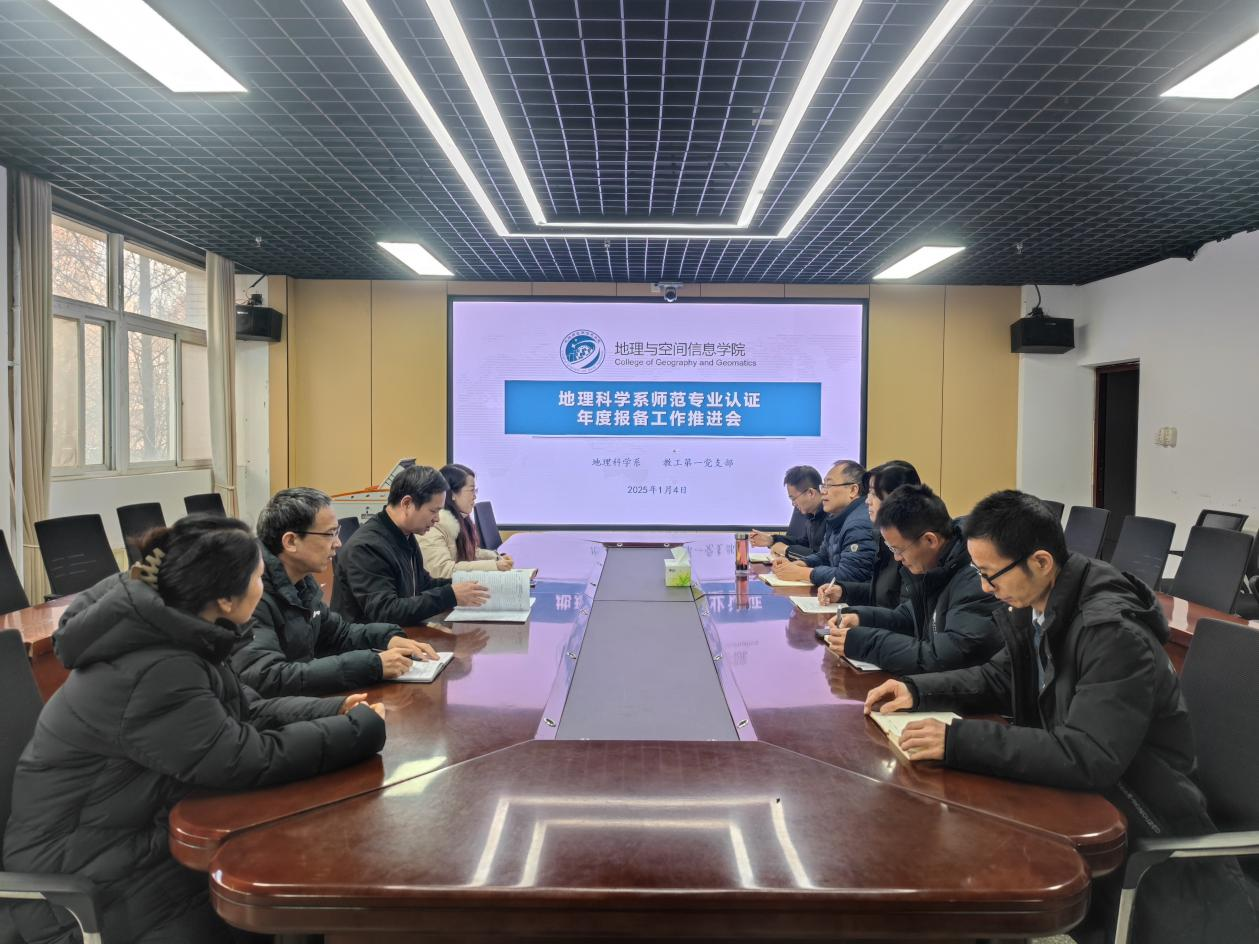 2025年1月4日下午,我院地理科学系召开了师范专业认证年度报备工作推进会,教学副院长李长坡及地理科学系全体教师参会。
