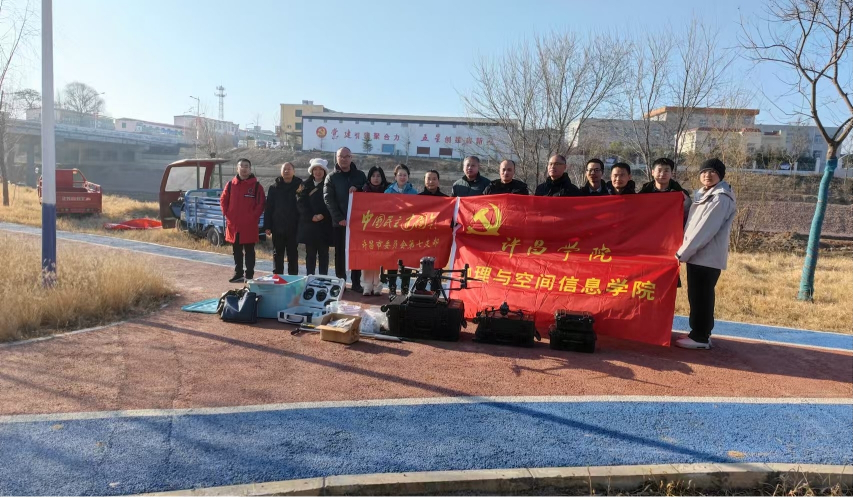 党建活动过程中,我院还与民建许昌市委员会第七支部联合开展了主题党日活动,民建许昌市委员会第七支部主委崔二峰,以及支部会员陆其俊、张晓娟等还参与了我院组织的颍河化行闸断面的科考工作。