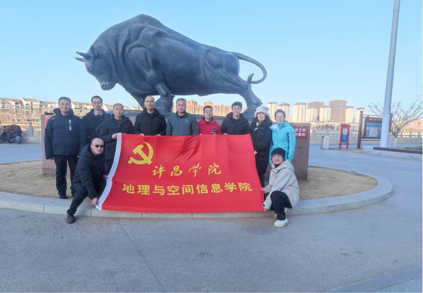 1月13日,在沙颍河(沈丘段)下溜渡口的“刘邓大军过沙河处”石碑旁,徐永新同志为党员们上了一场别开生面的微党课,他详细介绍了当年刘邓大军过沙颍河的历史背景,并结合工作实际,号召大家积极工作,勇于担当,主动作为。微党课结束后,闫慧院长强调,我院在学科专业建设和人才培养中,将充分发挥党组织的战斗堡垒作用,党员同志们也要发挥先锋模范带头作用,全力提升凝聚力、战斗力与执行力,确保各项工作高质量、高效率推进。
