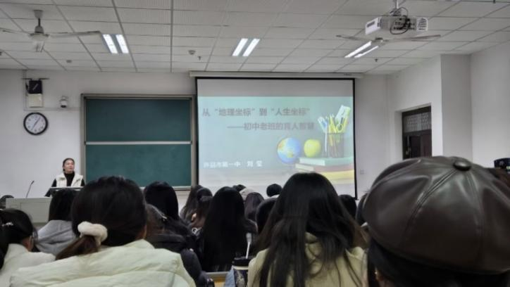 刘莹教师的讲座通过理论解析与案例实践相结合的方式,系统展现了其多年班级管理智慧,为新时代班主任工作提供了创新思路,为地理师范生提供了从专业教学到班级管理的系统性启示,助力师范生未来教师职业发展。