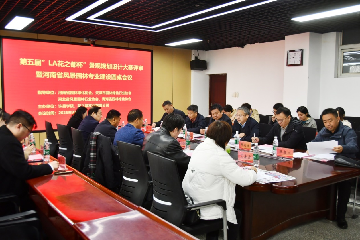 2025 年 3 月 8 日,许昌学院地理与空间信息学院迎来了一场风景园林教育的盛会 —— 第五届 “LA 花之都杯”景观规划设计大赛评审暨河南省风景园林专业建设圆桌会议。此次会议由河南、天津、河北、青海等四省的园林绿化行业协会指导,由许昌学院地理与空间信息学院、花之都实业有限公司共同主办。此次会议邀请了天津市、河南省园林绿化行业协会主要领导莅临指导,吸引了众多业内人士,11所高校的专家或风景园林专业负责人,共同评审第五届“LA花之都”杯景观规划设计大赛作品,并为风景园林教育的发展出谋划策。