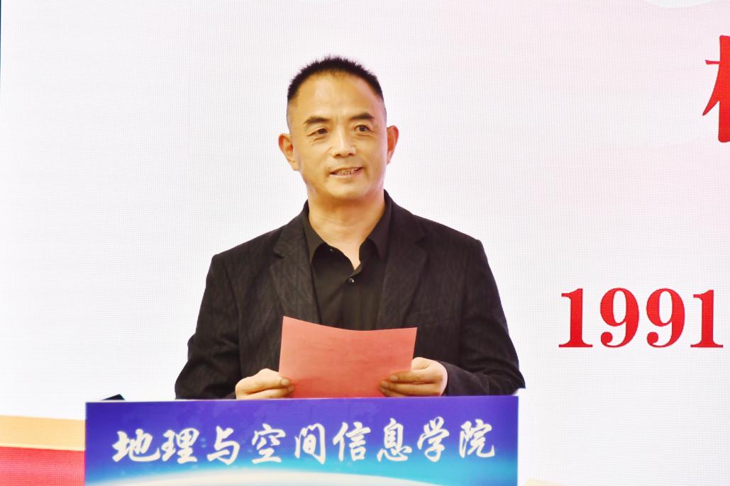 1991级地理系校友代表张红远深情回忆了在校求学时光,表达了对母校培养的感激之情,并呼吁广大校友积极参与校友分会活动,为学院发展贡献力量。