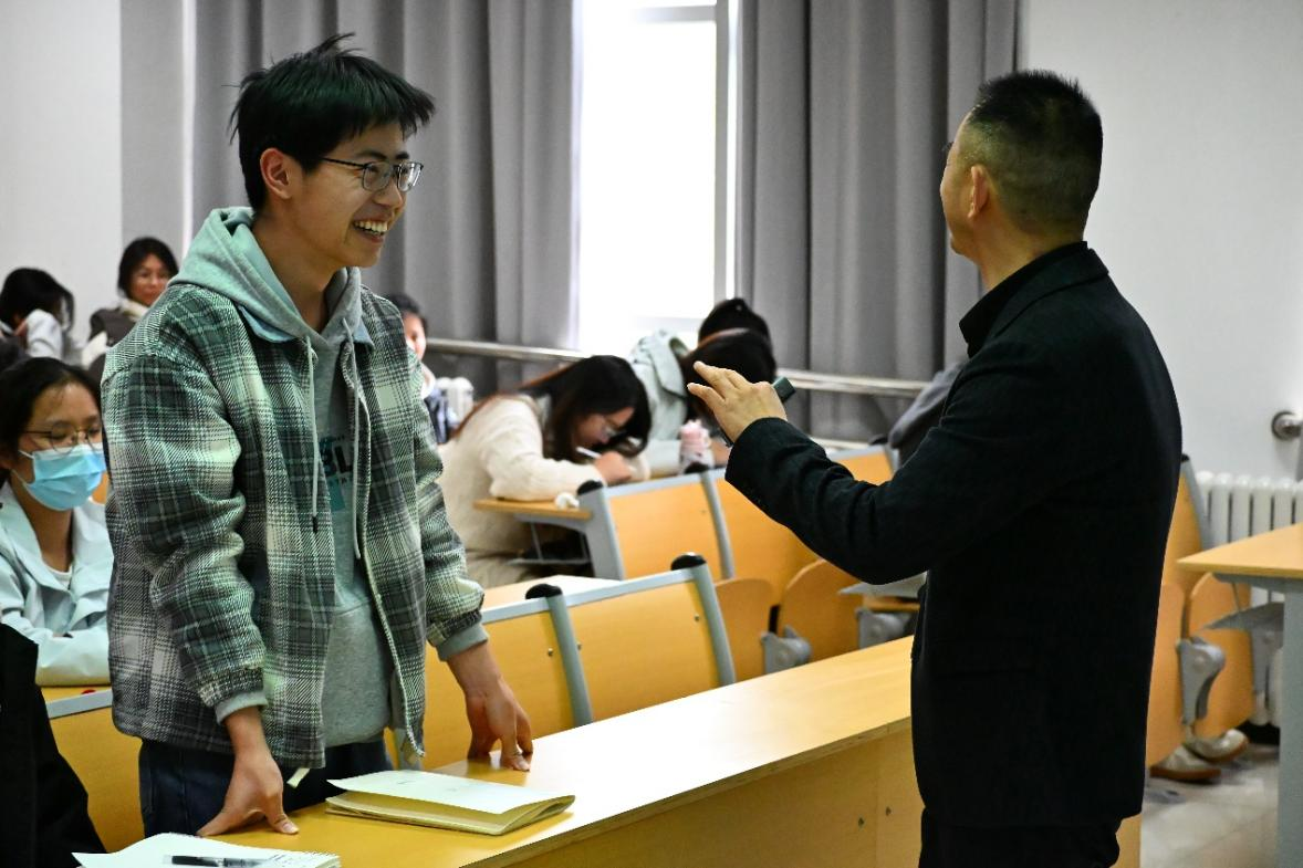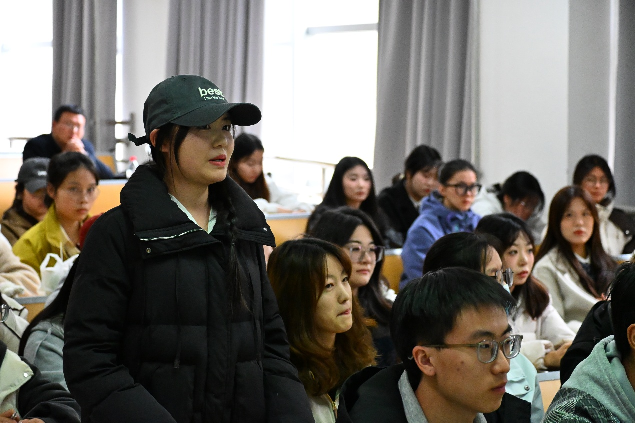 在问答环节,同学们就“如何处理教学与德育的关系”“青年教师如何保持工作热情”“未来教师的素质要求”“现阶段教师的待遇”等问题踊跃提问。三位校友结合自身经历耐心解答,并分享了行之有效的实践智慧。