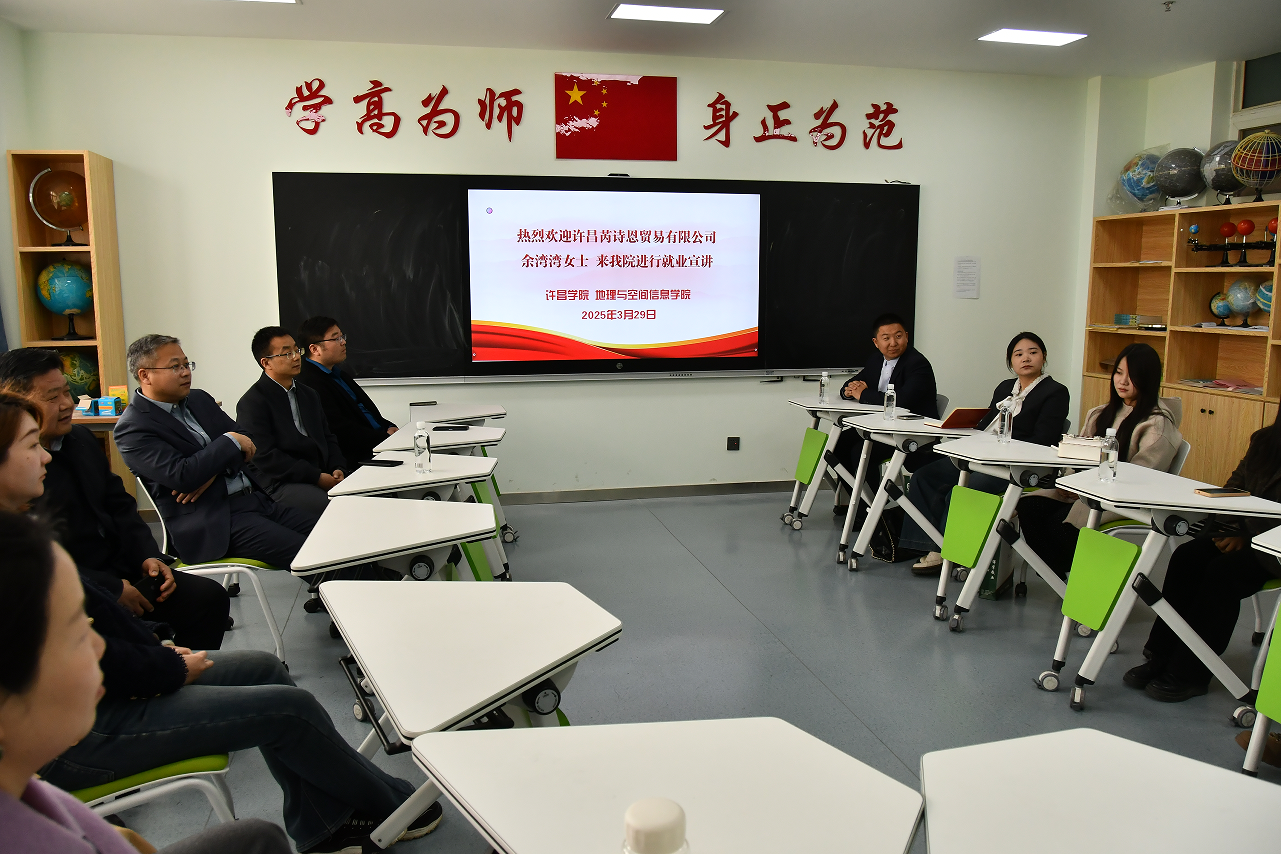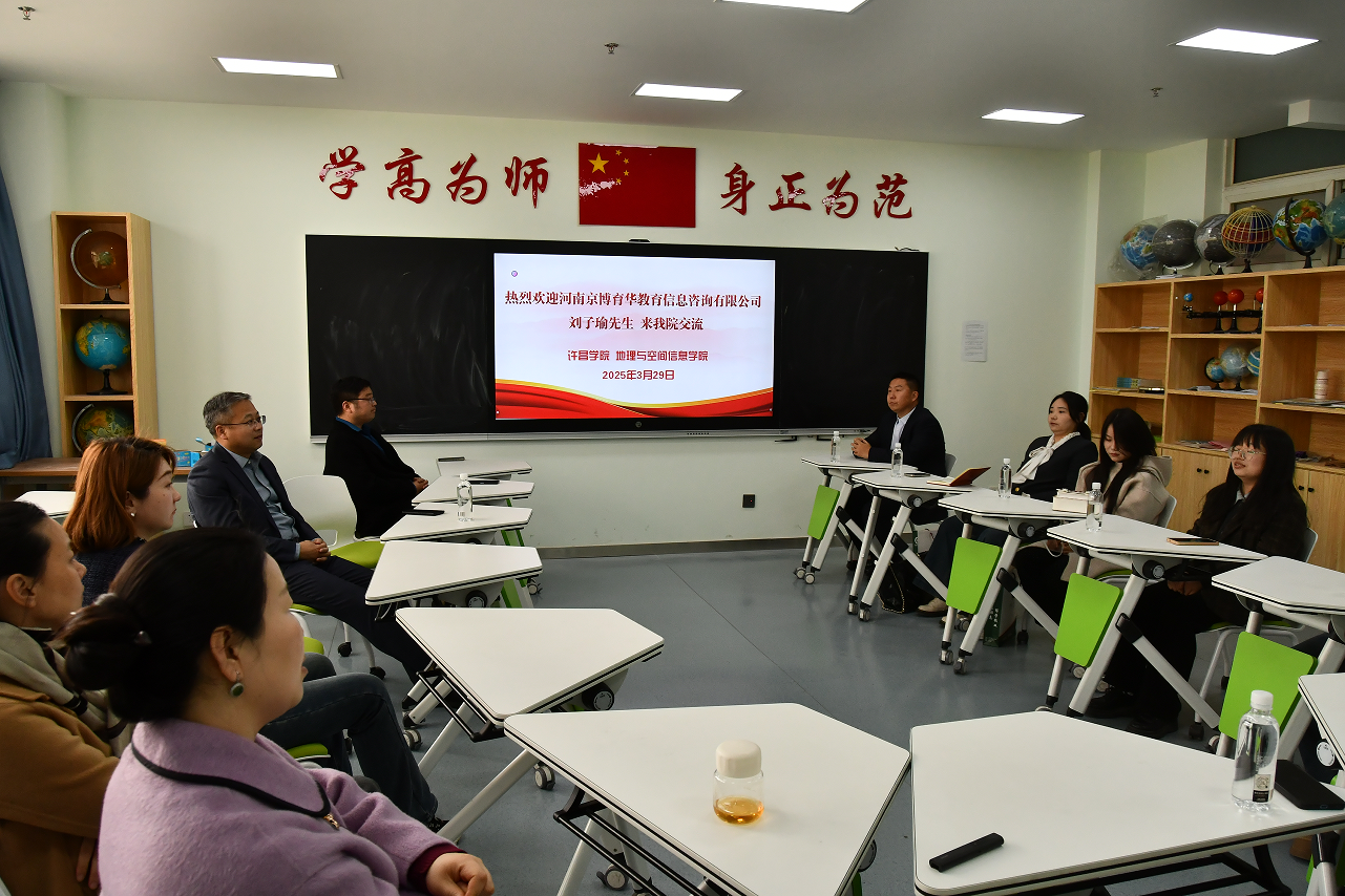 3月29日,我院风景园林系邀请河南银基文旅商业管理有限公司、许昌芮诗恩贸易有限公司、河南京博育华教育信息咨询有限公司等三家企业来我校交流,闫慧院长参加了座谈会。在这次座谈会上,校期间不仅就企业招聘要求与工作环境进行介绍,还就2025级人才培养方案修订、校企联合课程开发等话题展开讨论并取得了积极的结果。