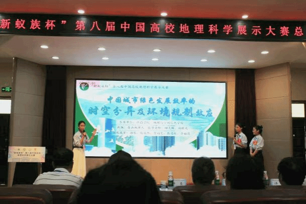 2025年7月27日,“新蚁族杯”第八届全国高校地理科学展示大赛在开封河南大学落下帷幕。我院由田光辉老师、林晓光老师指导,地理科学专业学生郭琴、杨欣然、贾向雯、陈思彤、李福慧组成的“青山地理人”团队经过激烈角逐,凭借作品《中国城市绿色发展效率的时空分析及环境规制效应》脱颖而出,荣获全国二等奖。