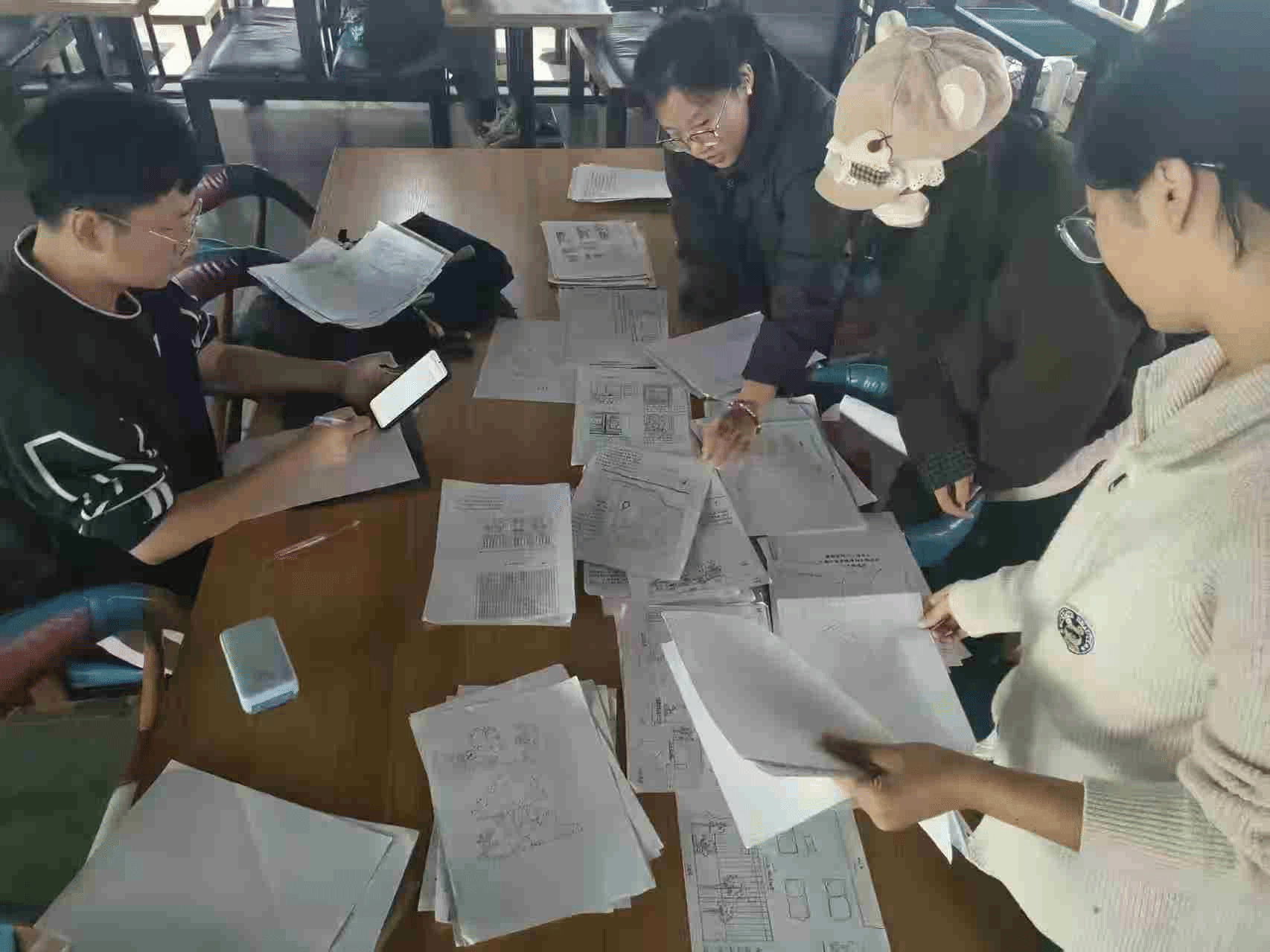 图6 学生返校后整理作业并制作A0展板