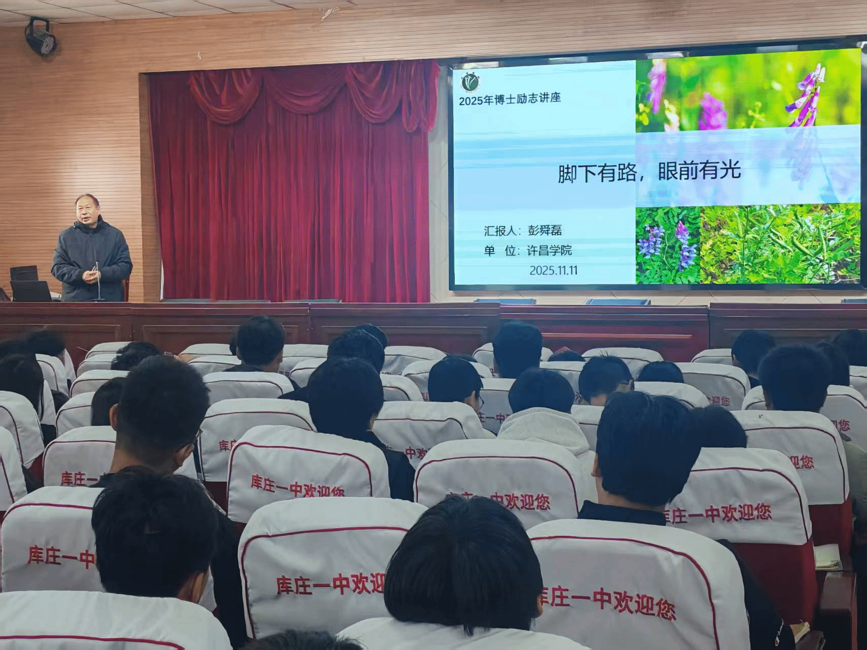 2025年11月11日上午,许昌学院地理与空间信息学院彭舜磊博士与李爽博士应襄城县库庄一中邀请,为学生们带来了一场以“胸怀梦想,砥砺前行”为主题的励志讲座。作为地理科学系“智慧启航,博士引领”系列活动的一站,本次讲座也得到了库庄一中地理教研组教师的积极参与交流,共同助力学生成长。