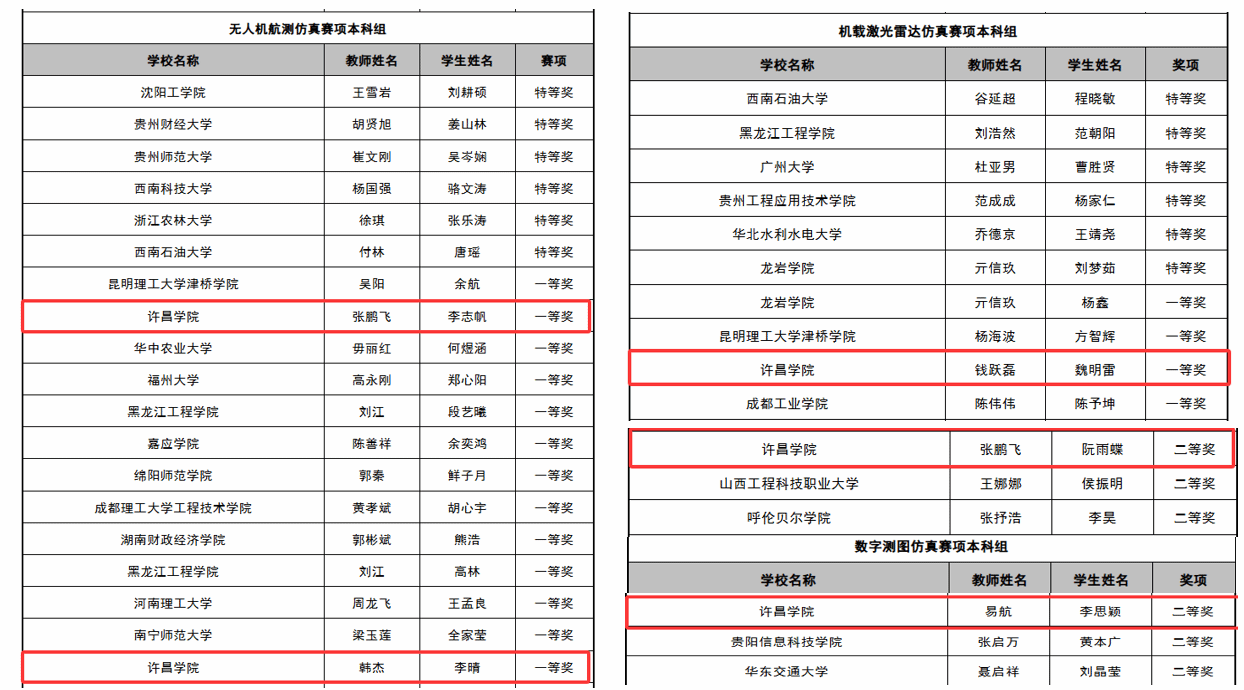 12月3日,第五届全国大学生测绘地理信息虚拟仿真技能竞赛结果公布,我院学生凭借出色的专业技能,获得全国总决赛无人机航测仿真一等奖两项、机载激光雷达仿真一等奖一项、二等奖一项,数字测图仿真二等奖一项。