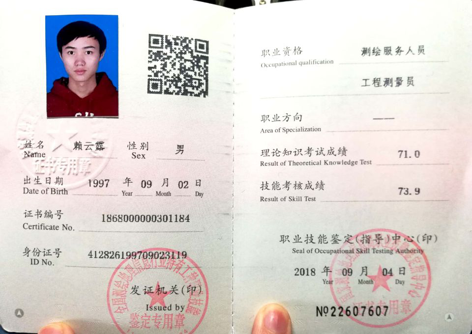 学生通过参加测量行业资格考试,获得了相应的资格证书,如图17所示。