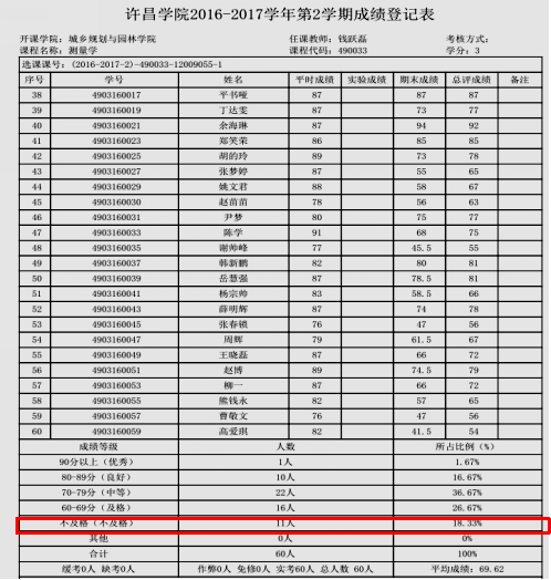 考核内容是学生在规定时间内,完成水准测量、角度距离测量项目任务,教师根据完成的时间、规范性和质量给予评分,作为期末考核成绩,这在一定程度上能督促学生平时主动学习、勤加练习自身测量技能的积极性,着实提高学生的知识实践应用能力。