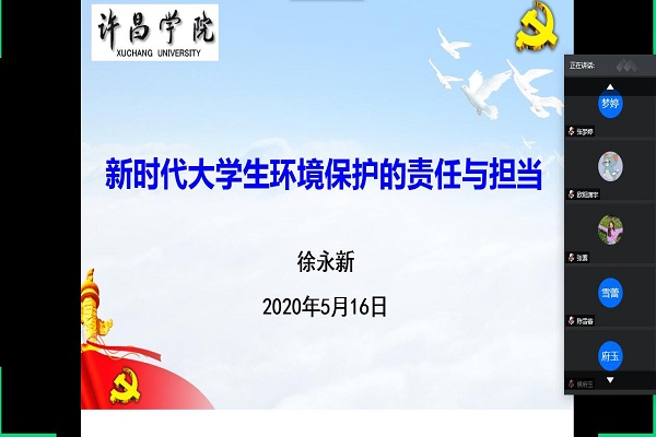 5月16日上午,我院开展以“新时代大学生环境保护的责任与担当”为主题的分党校培训课。本次课程的主讲老师是徐永新,并采用网络授课的方式,由我院预备党员代表及第二十三期分党校全体学员共同参与。