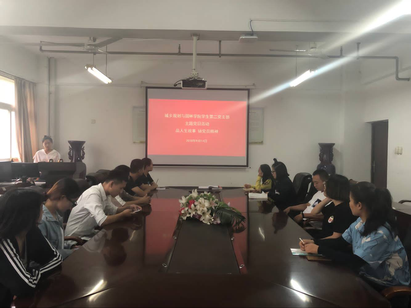 为了进一步加强党支部建设,传承高尚革新精神,丰富党员政治生活,同时加强对学生党员的思想教育,引导他们自觉用习近平新时代中国特色社会主义思想武装头脑,把党的十九大精神转化为推动各项工作创新发展的动力。2018年9月14日下午,城乡规划与园林学院学生第二党支部全体党员在城规楼二楼会议室举行了“品人生故事 铸党员精神”主题党日活动。