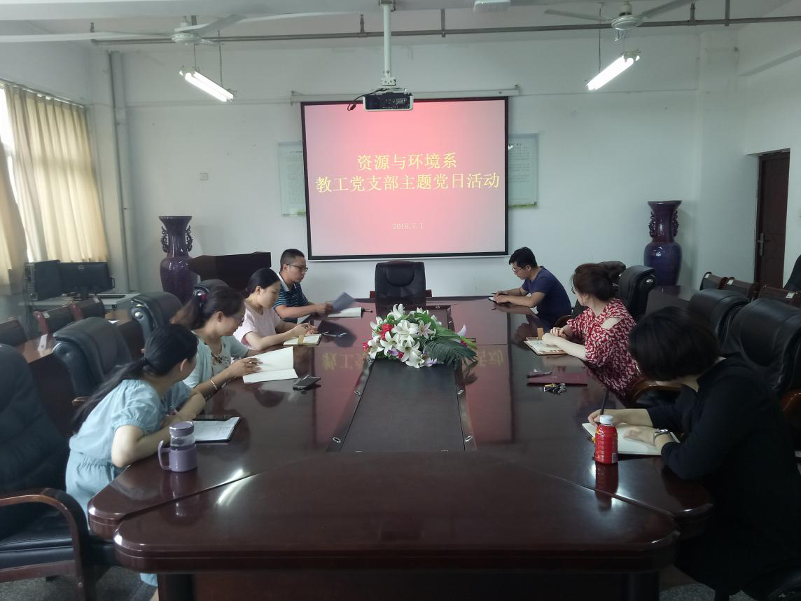 为纪念中国共产党建党97周年,资源与环境系教工党支部于7月1日下午在党员活动室开展了以“不忘初心,牢记使命”为主题的党日活动。由党支部书记徐永新主持,全体教工党员参加。