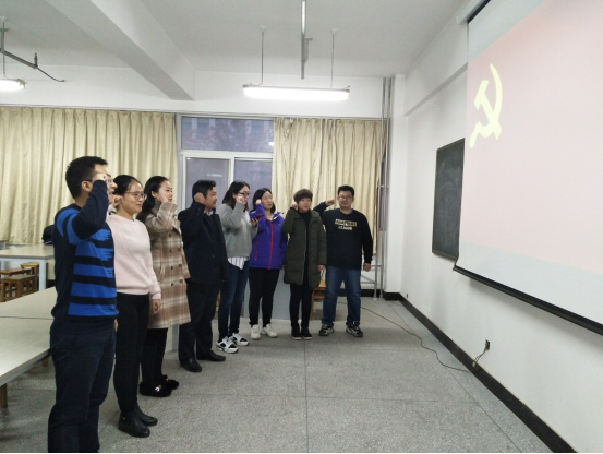 李满园书记首先向在座的参会人员传达了党的十九大精神,并着重讲解了召开“三会一课”、主题党日活动会议的重要性。其次,在李满园书记的带领下重温了入党誓词,所有参会人员共同宣誓。接着,所有参会人员就十九大相关精神和新时期发展,结合教学实际进行了学习探讨,每个人都重点讲了自己的十九大学习心得。