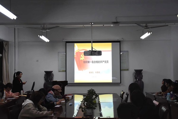 会议初始韩慧鸽老师向到场的全体党员表示了欢迎,随后韩慧鸽老师以PPT的形式向学员们详细介绍了关于党的性质、宗旨、指导思想、最高理想和现阶段的奋斗目标,党在社会主义初级阶段的基本理论、基本路线、基本纲领、基本经验点等内容。随后韩慧鸽老师向到场的学员们提出了关于一名合格党员的要求与标准,并就这些这些的标准及要求做出了相应的介绍,强调其所蕴含的时代意义。韩慧鸽老师强调学员应加强理论知识学习,坚定理想信念,做好党员的模范带头作用,做一个坚守底线、严于律己的好党员。