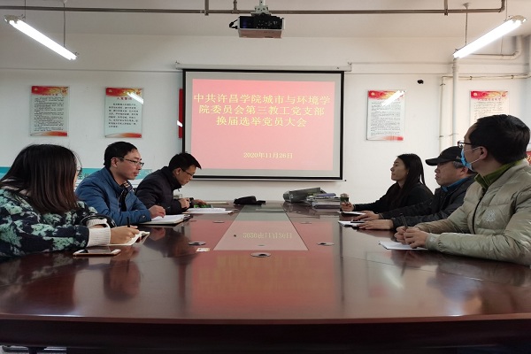 2020年11月26日下午,中共许昌学院城市与环境学院委员会教工第三党支部在城环院二楼党员活动室召开党员大会,选举新一届委员会委员。会议由殷学永同志主持,支部应到会党员7名,实到会党员7名。