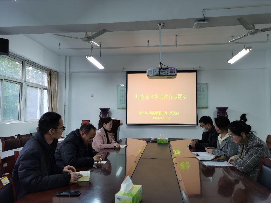 11月1日下午,教工第一党支部召开师德师风警示教育主题党日活动,全体党员参加,会议由徐永新书记主持。