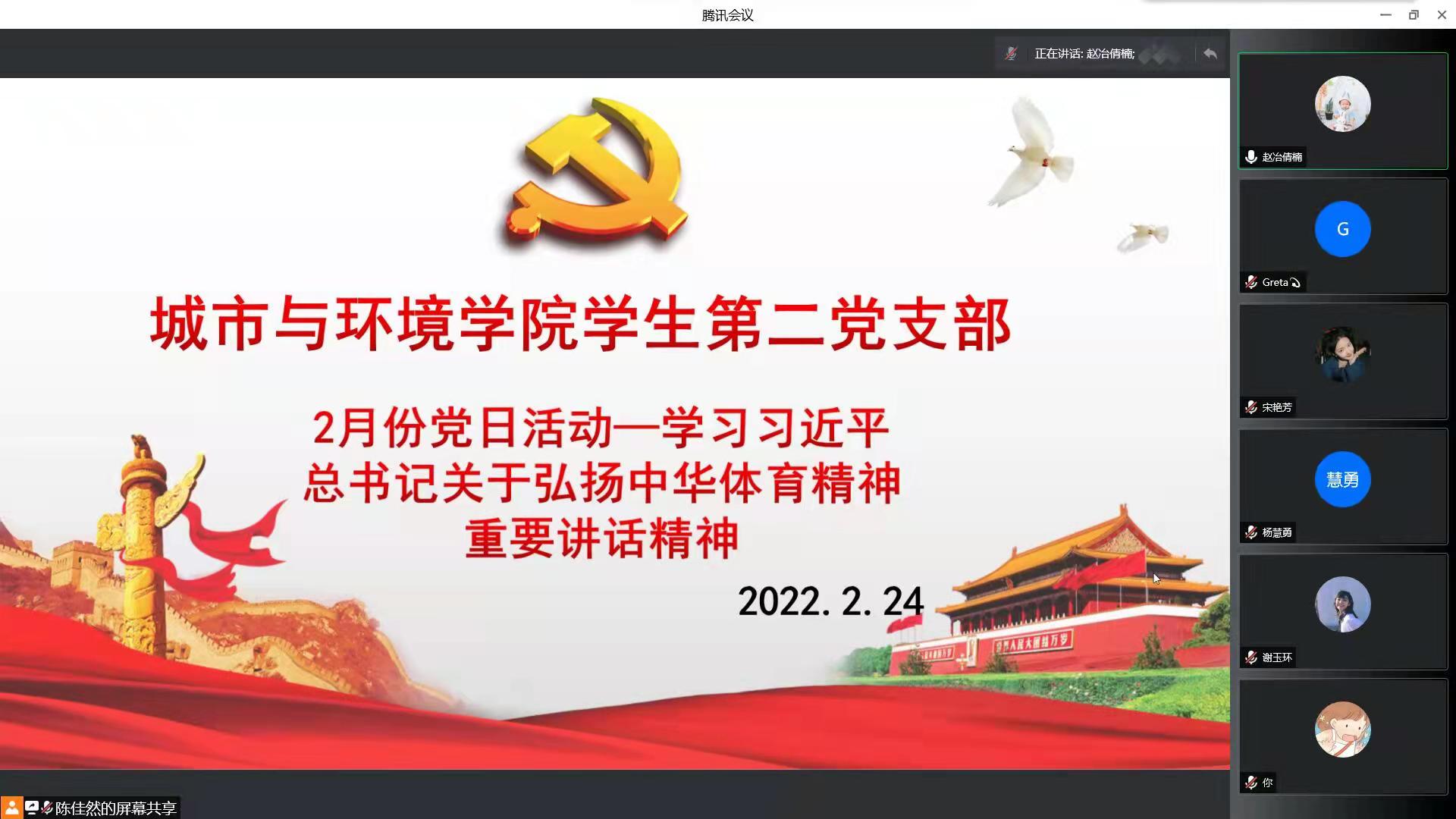 学生第二党支部开展主题党日活动(2月)——学习习近平总书记关于弘扬中华体育精神重要讲话精神
