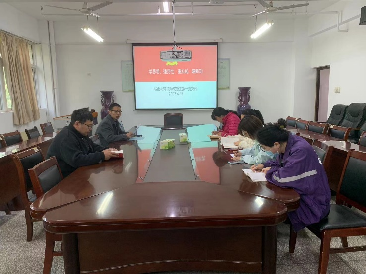 4月25日下午,城市与环境学院教工第一党支部在院二楼会议室召开4月份党日主题活动。活动主题为“学思想、强党性、重实践、建新功”。会议由徐永新书记主持,教职工第一党支部全员参加。