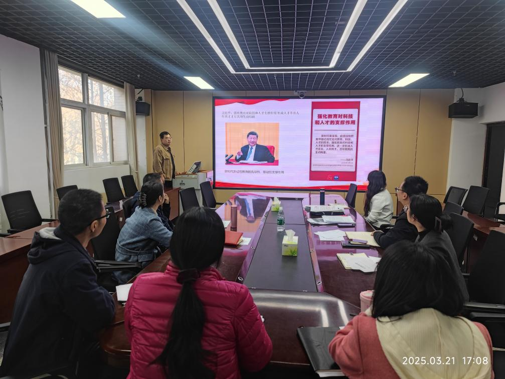 会议之前,全体支部成员已经学习了相关材料,为开好主题党日活动打牢坚实基础。党课活动围绕三个主题展开:一、学习习近平总书记关于教育的重要论述;二、2025年两会中有关教育的论述;三、学习《教育强国建设规划纲要(2024—2035年)》。田光辉书记强调,这些重要论述为教育事业发展指明了方向,这些举措让党员们深刻认识到教育在国家发展中的重要战略地位,以及自身肩负的责任。
