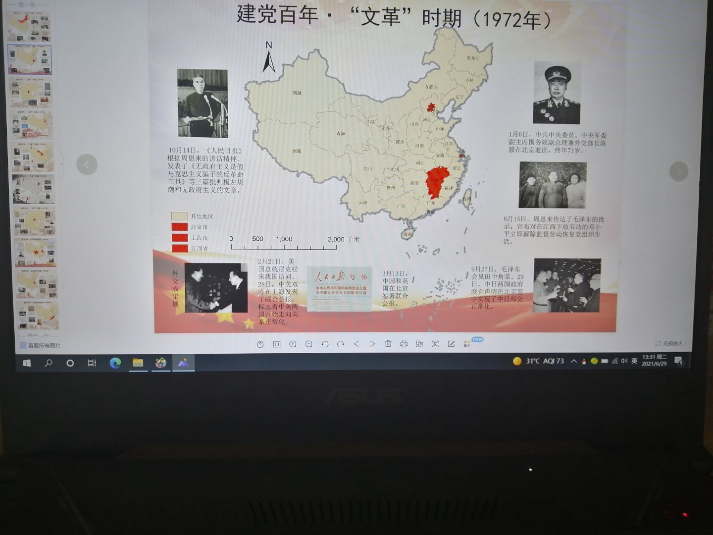 7月1日,今天是党的生日,我国中国共产党建党一百周年,我们在上午九点召开工作会议。会议中,队长根据社会实践的大方向和第二天的人员分工情况,安排了两个部分的工作内容。第一方面是全员参与的学习部分,契合时政热点,观看6月29日召开的“七一勋章”颁授仪式、学习会议精神;第二部分活动内容是党史图制作部分的前期准备工作,地图制图离不开数据信息的支持,通过收集党史大事记信息来填充地图内容,地图模板方面选取高清红色相关图像,凸显庄严肃穆。今天的工作分为两部分进行,上午主要观看仪式直播回放,下午进行资料的整理和地图底图模板的选取。