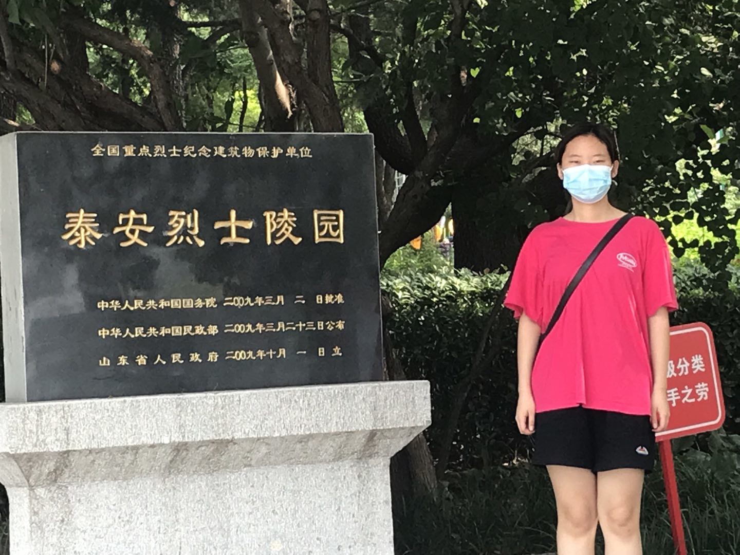 跟随我们的尚梦桐同学的脚步一起走进泰安市革命史展览馆。进入正门可以看到高耸肃穆的革命壮士纪念碑,西侧是革命纪念馆供人们参观学习。进入纪念馆可以看到馆内收集了很多与革命有关的历史文物和珍贵照片,一幅幅历史照片,一件件革命遗物,一幕幕革命先辈带领当地人民群众同侵略者浴血奋战、英勇不屈的情景仿佛出现在眼前。伴随着讲解员的讲解下和相关抗战视频的观看下,我们可以更加深刻的认识到作为新时代青年应该继承和发扬革命先辈的精神。