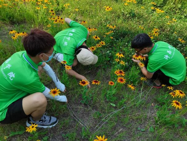 2021年7月2日,实践队依然按照之前的分组,分为3个小队对之前采水样的点位附近的近岸植物拉取样方,调查近岸植物的生物多样性,便于整体了解河流周边环境状况。