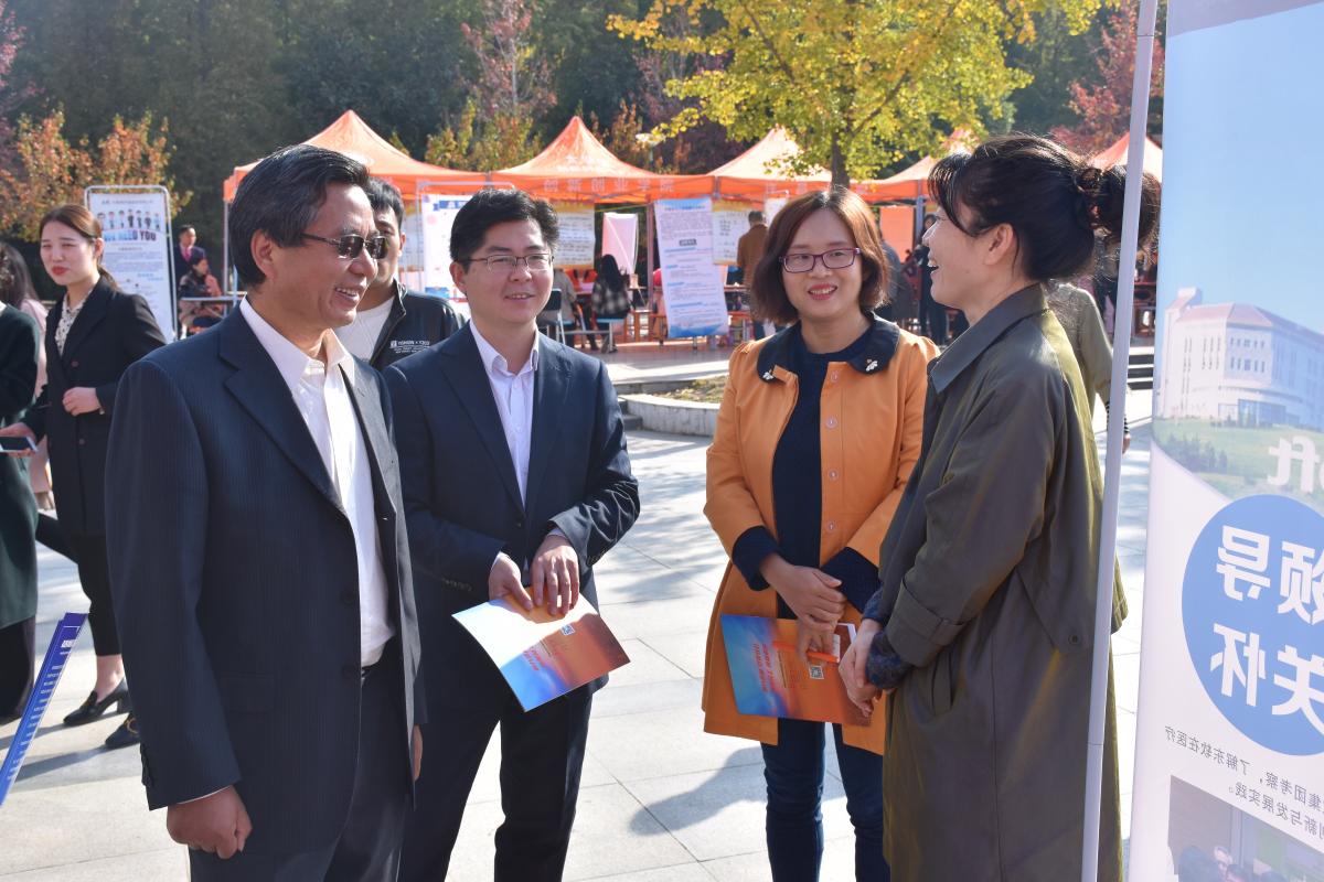 2018年11月3日上午9点,许昌学院在弘毅广场举行了2019届毕业生秋季双选会,我院党总支书记王中立、院长高均昭、副书记侯刚及团总支书记赵学琴老师参与了此次活动。