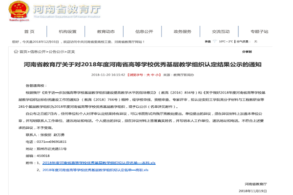 2018年11月,资源与环境系被河南省教育厅认定为“河南省优秀基层教学组织”,基层教学组织是高等学校立德树人、落实教学任务、促进教师教学发展、开展教研活动、推进教学改革的基本教学单位,是联系教师与学生、落实教学工作的“最后一公里”,其建设和管理水平直接关系到学校的教育教学水平和人才培养质量。资源与环境系此次被认定为“河南省优秀基层教学组织”也是对地理科学专业办学质量和水平的认可,资源与环境系将以此次立项为契机,进一步加强基层教学组织建设,明确建设任务,健全管理制度,完善运行机制,不断提高教育教学水平和人才培养质量。