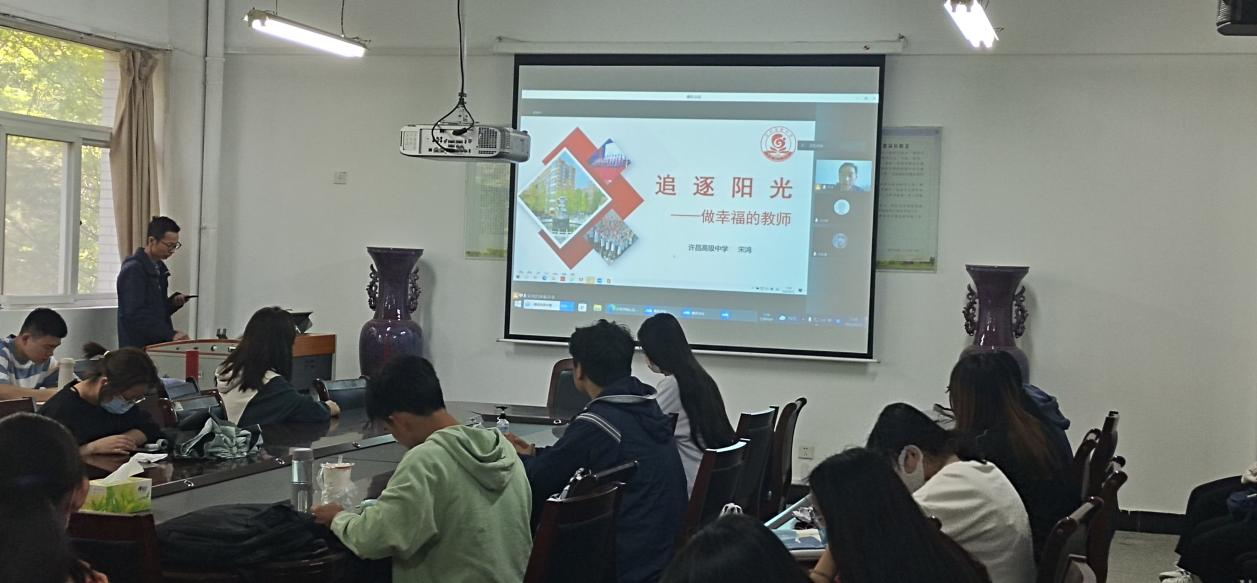 2022年4月21日上午,邀请许昌市高级中学宋鸿副校长以“追逐阳光,做幸福的教师”为题为地理科学专业学生开展线上讲座。讲座开始,徐永新老师为与会同学介绍了主讲教师宋鸿老师的基本情况,希望同学们珍惜向中学教育阶段的优秀老师学习的机会,为自己今后教学做准备。
