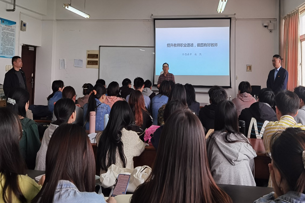 4月15日下午,首次邀请了许昌市第一高级中学地理名师,校纪委书记赵凯同志以“提升教师职业道德,做四有好教师”为题目,与地理科学全体同学进行了一次精彩的教师技能交流。讲座伊始,袁胜元院长为与会同学介绍了举办本次讲座的目的意义、主讲教师赵凯老师的基本情况,并预祝了本次讲座圆满成功。