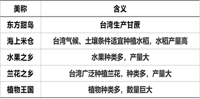 (2)为什么台湾有那么多的美称?说说这些美称与当地自然条件的关系。 |